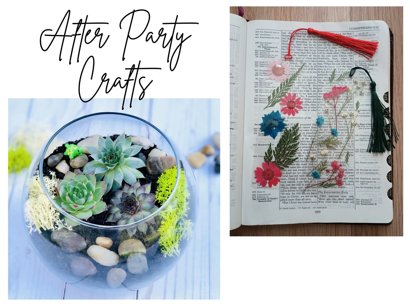Join us after the retreat in the cafe rooms for a continued time of fellowship & light refreshments. For an additional $15 create "No-Talent-Needed" crafts of a succulent terrarium and pressed flower bookmarks.